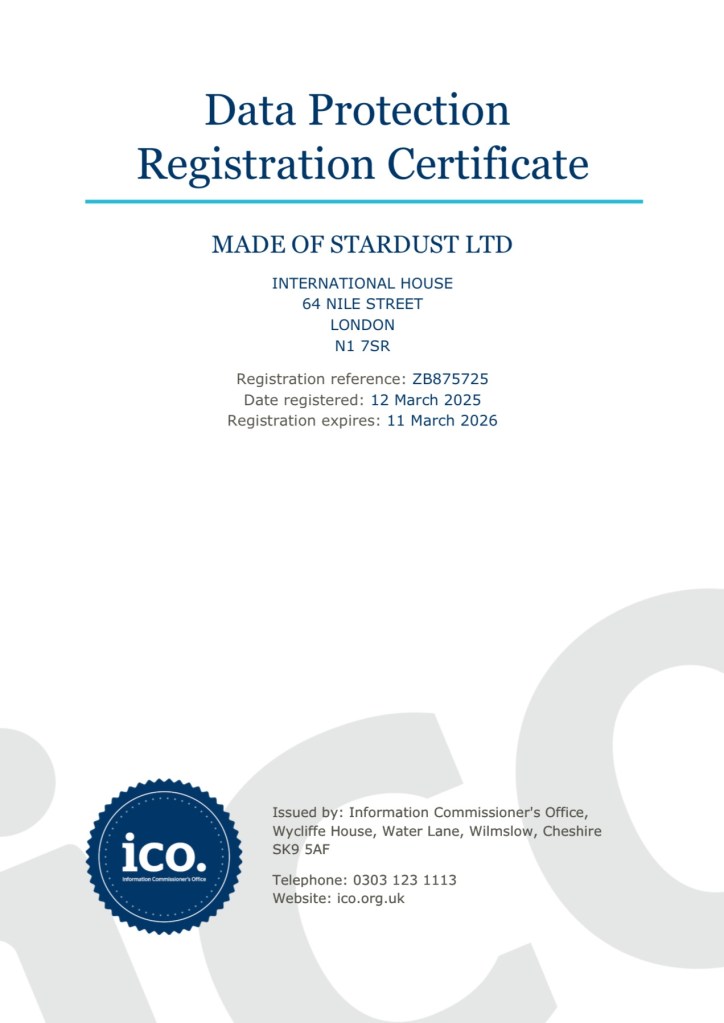 Email: contact@madeofstardust.co.uk